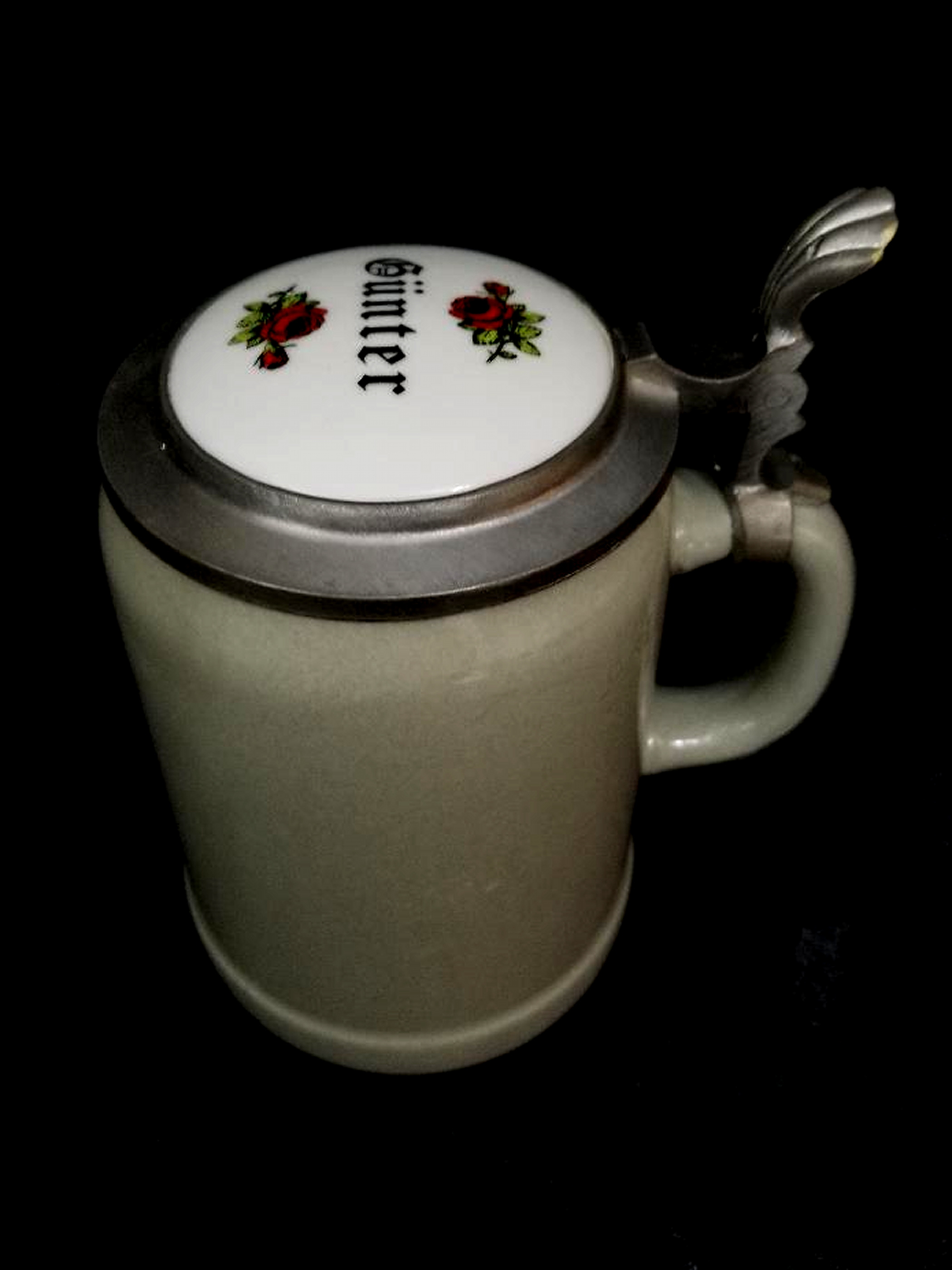 Vintage W German Stoneware Beer Stein Giinter With Rein Zinn Lid