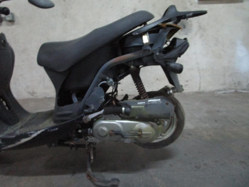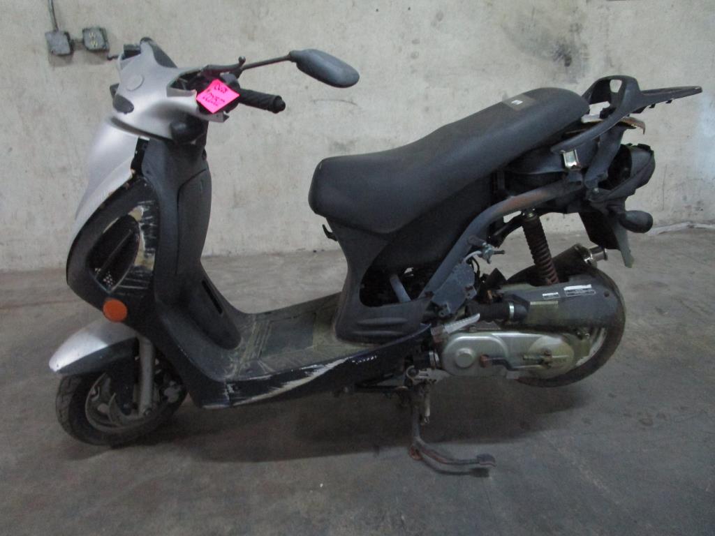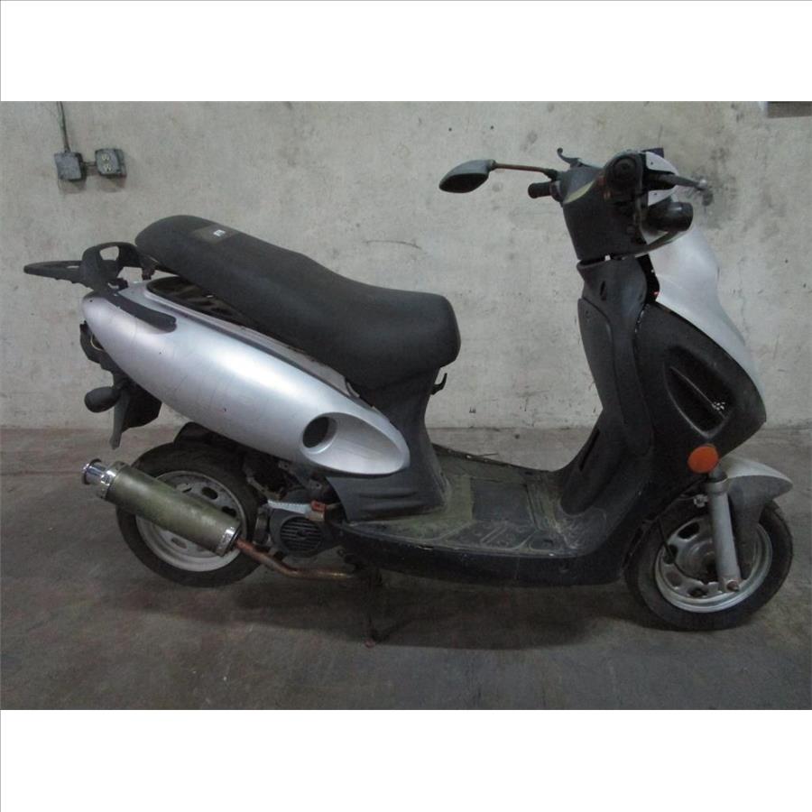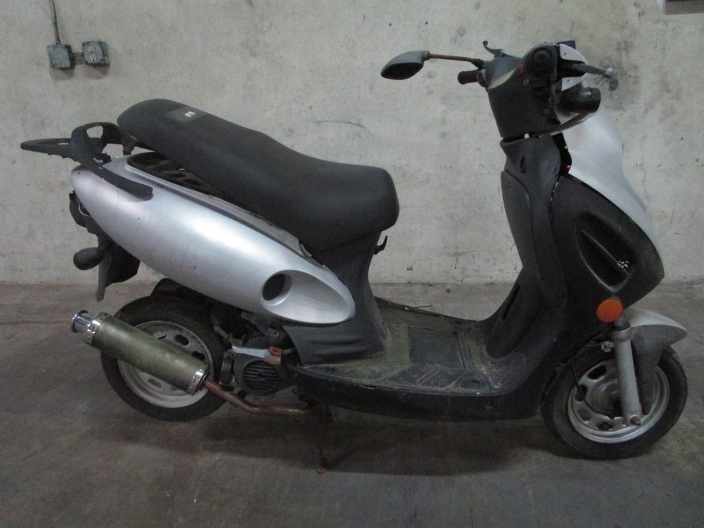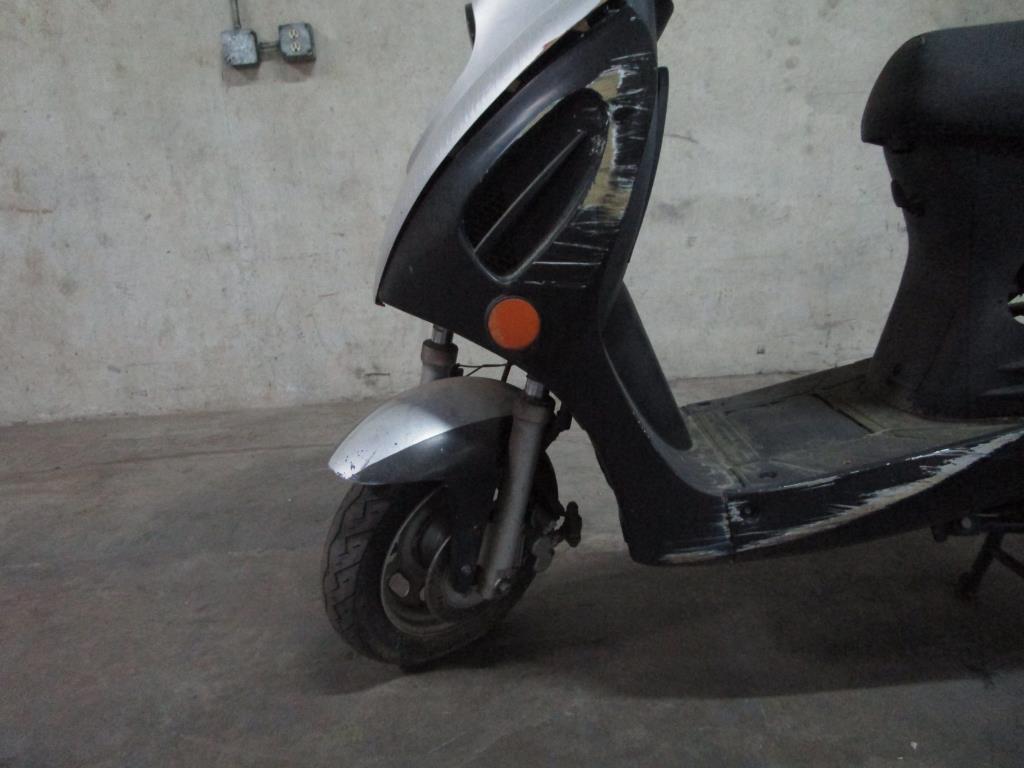 - Under seat storage, storage rack on rear end, head and tail lights painted black, foot pedals, with kick stand.