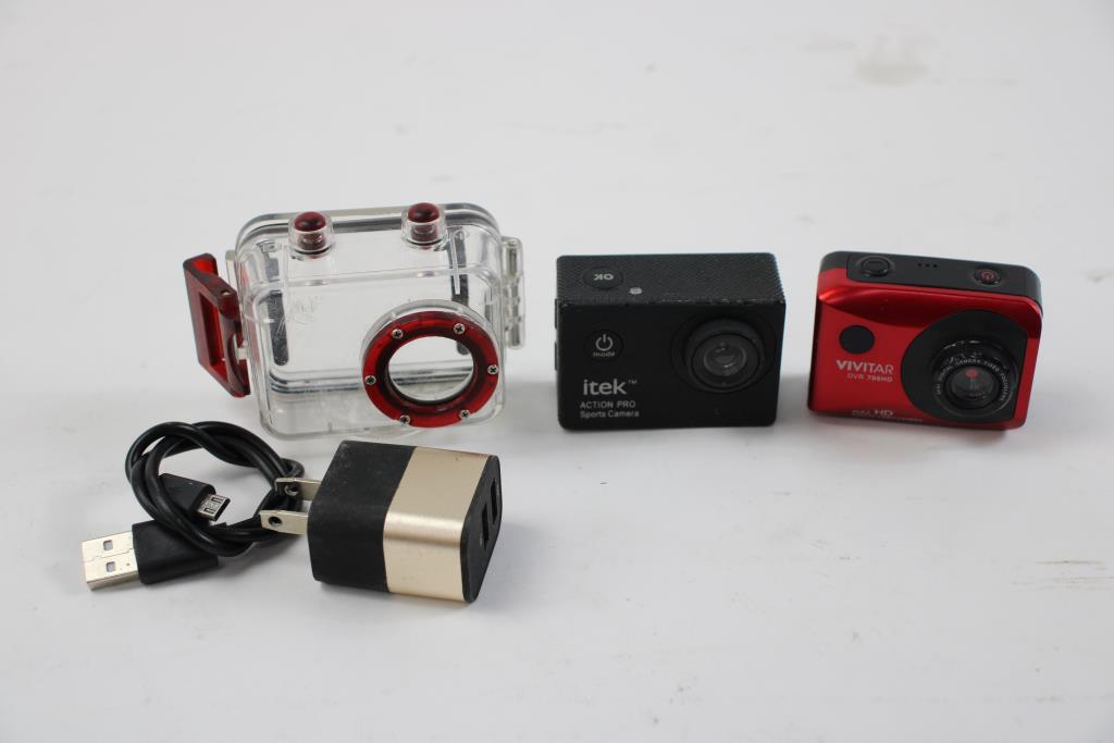 Vivitar And Itek Action Cameras, 4 Pieces
