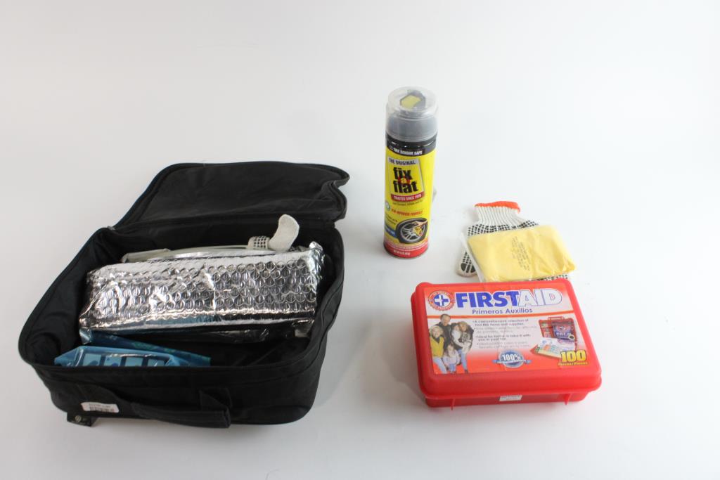 Get a great deal with this online auction presented by PropertyRoom.com on behalf of a law enforcement or public agency client. - First aid Kit, Fix a Flat can, Hand squeeze Flashlight, Triangle Assembly, and more