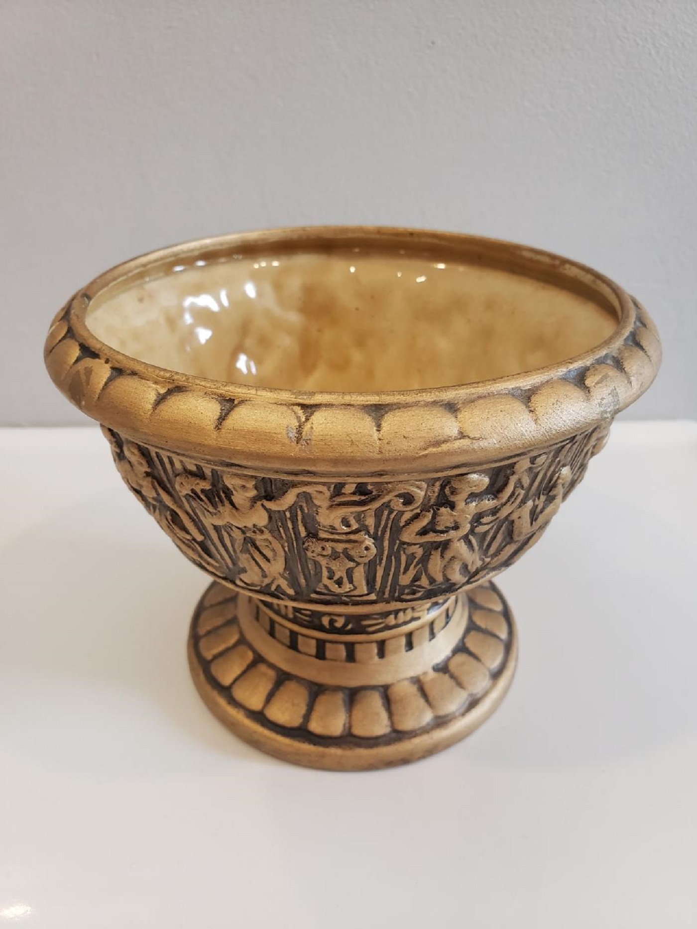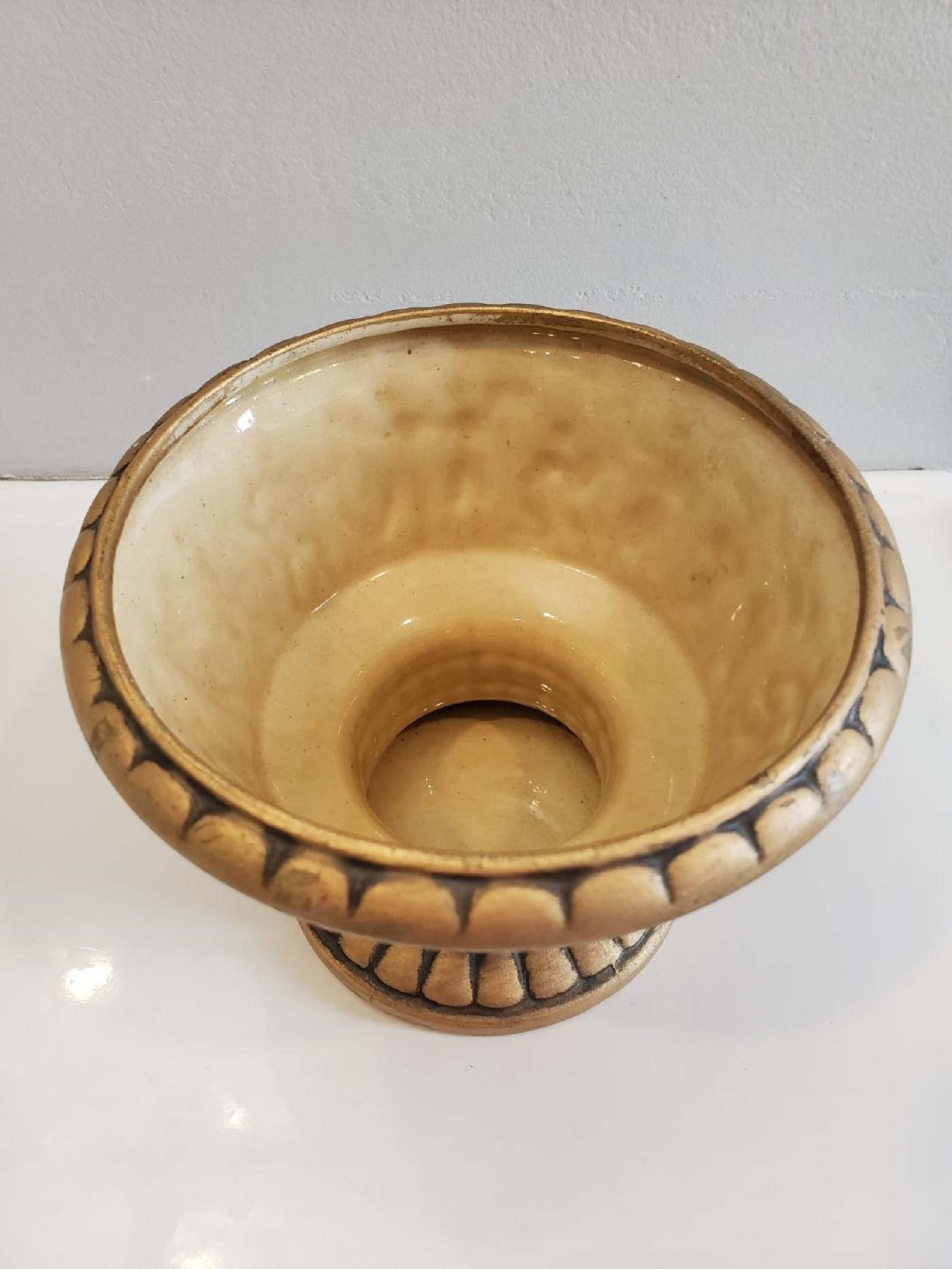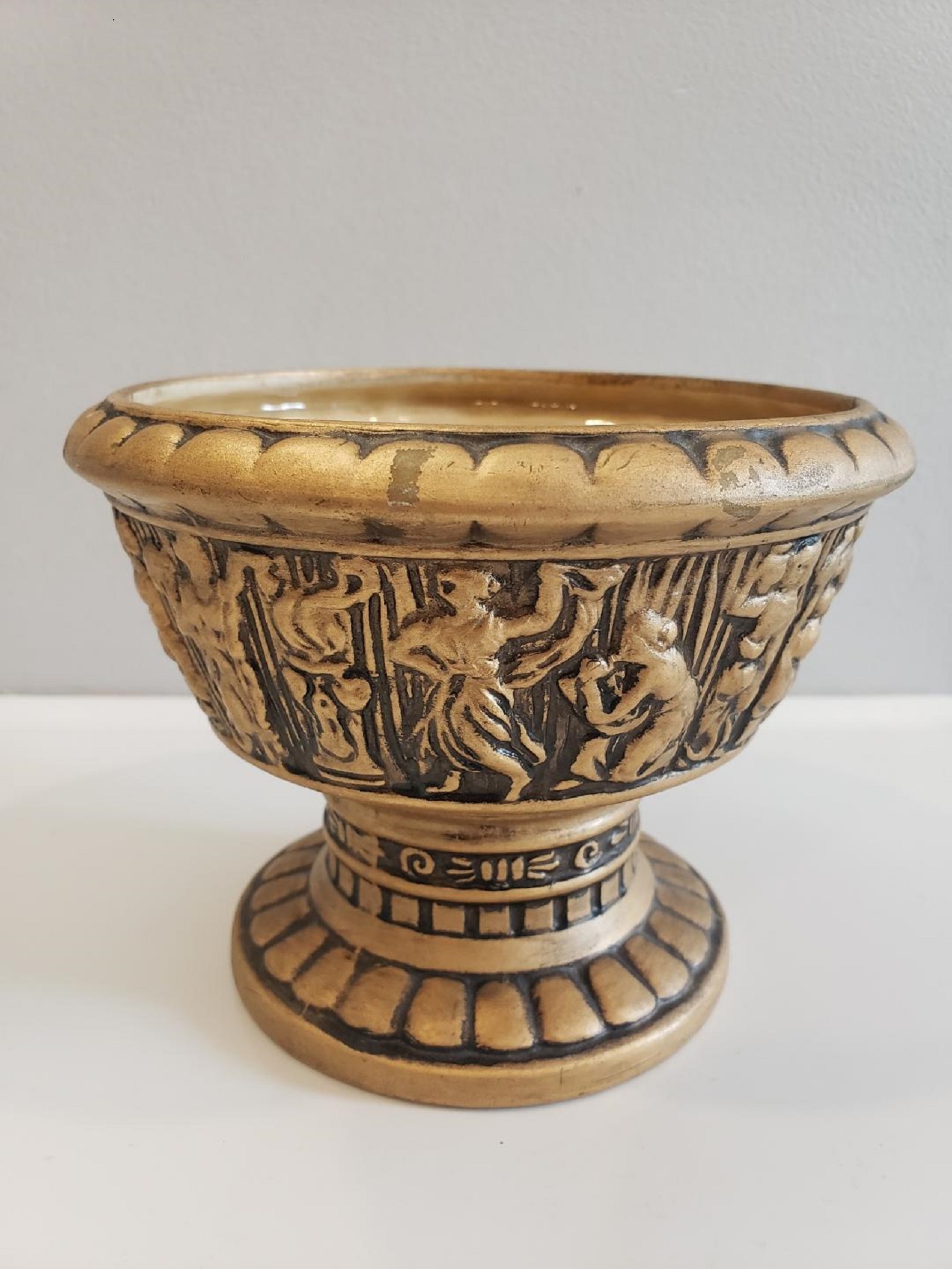 VTG Hand Crafted Embossed Medieval Pattern Ceramic Pedestal Vase - Japan