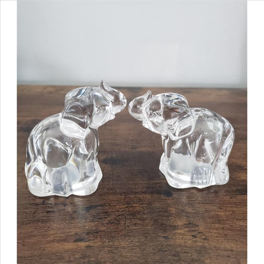 Vintage trunk-up elephant figurine clear glass salt and pepper shakers set