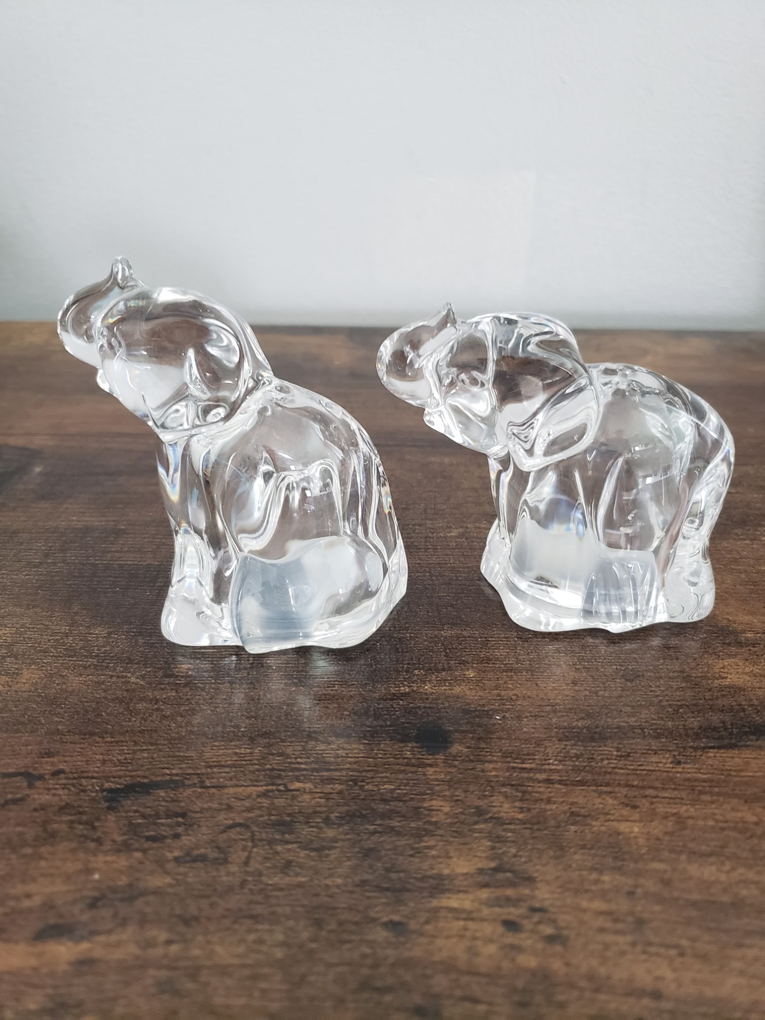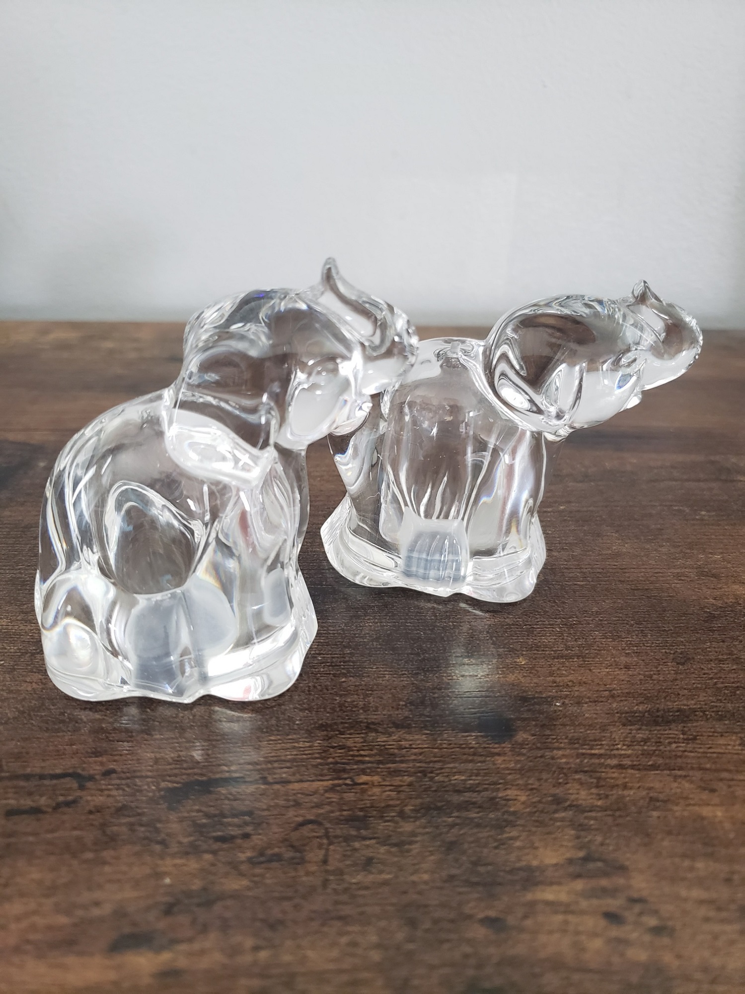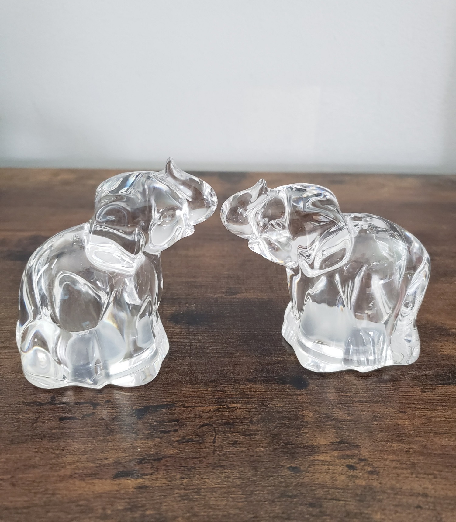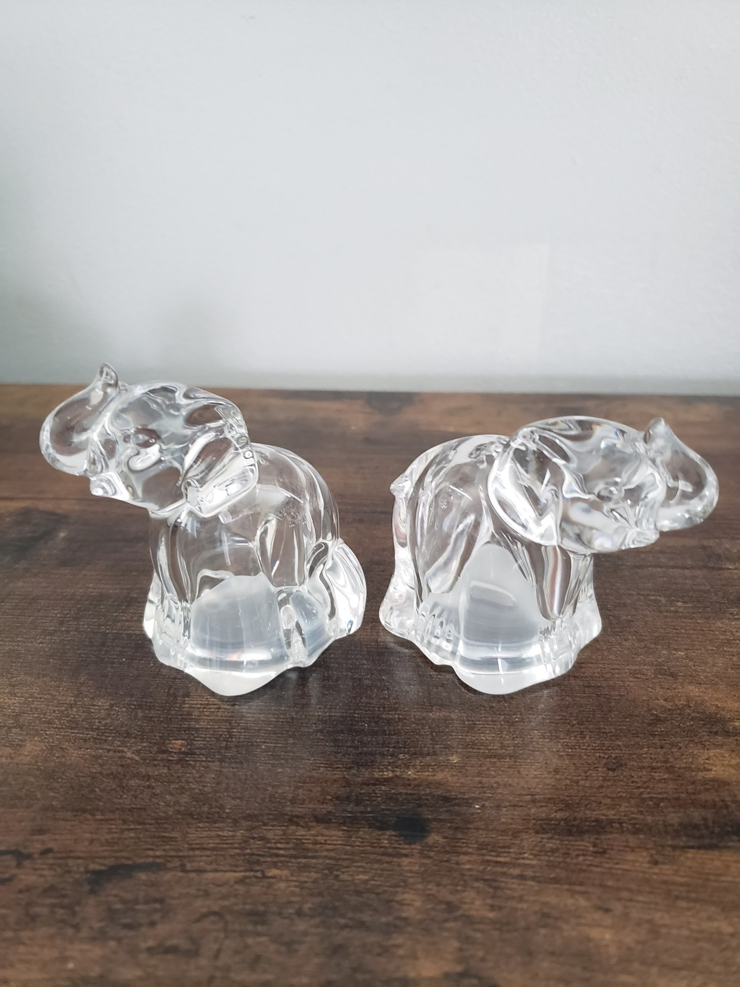 VTG Trunk Up Elephant Clear Glass Salt & Pepper Shakers Set