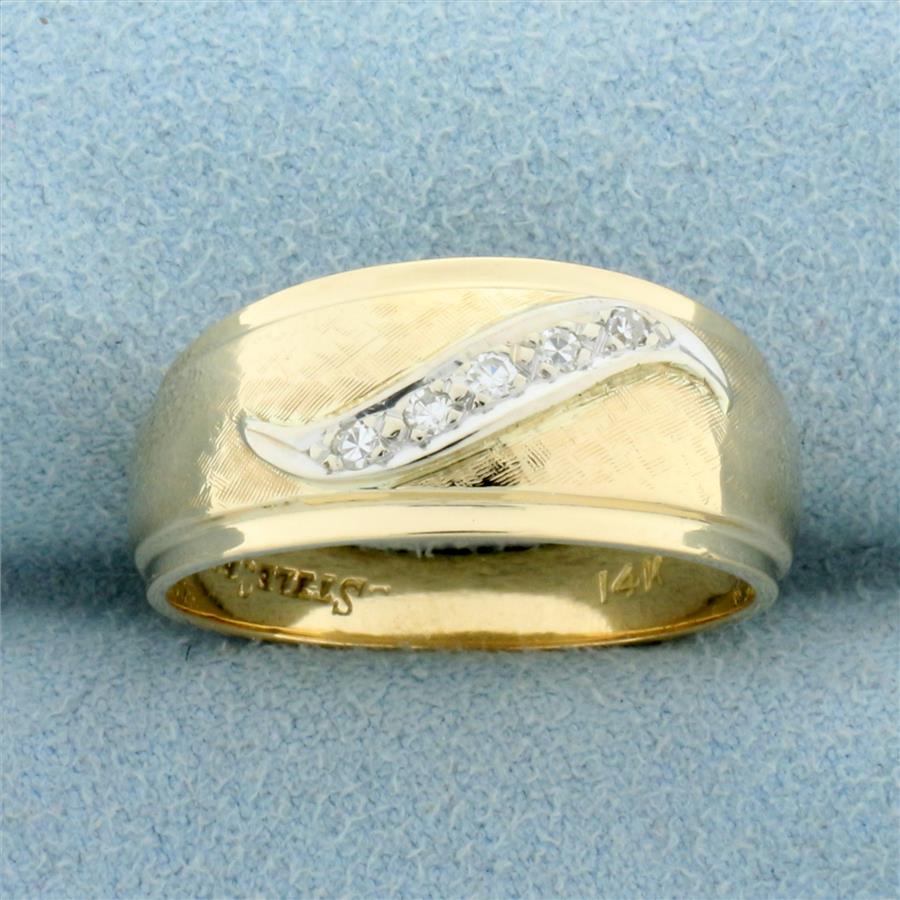 Waive Design Diamond Band Ring in 14K Yellow and White Gold