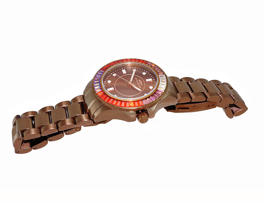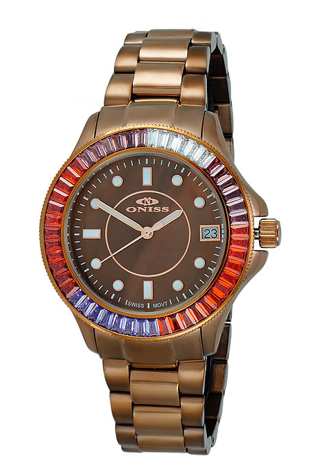 Case Material All Stainless Steel (Brown-IP tone), Bezel accented with Multi-color austrian crystal stone