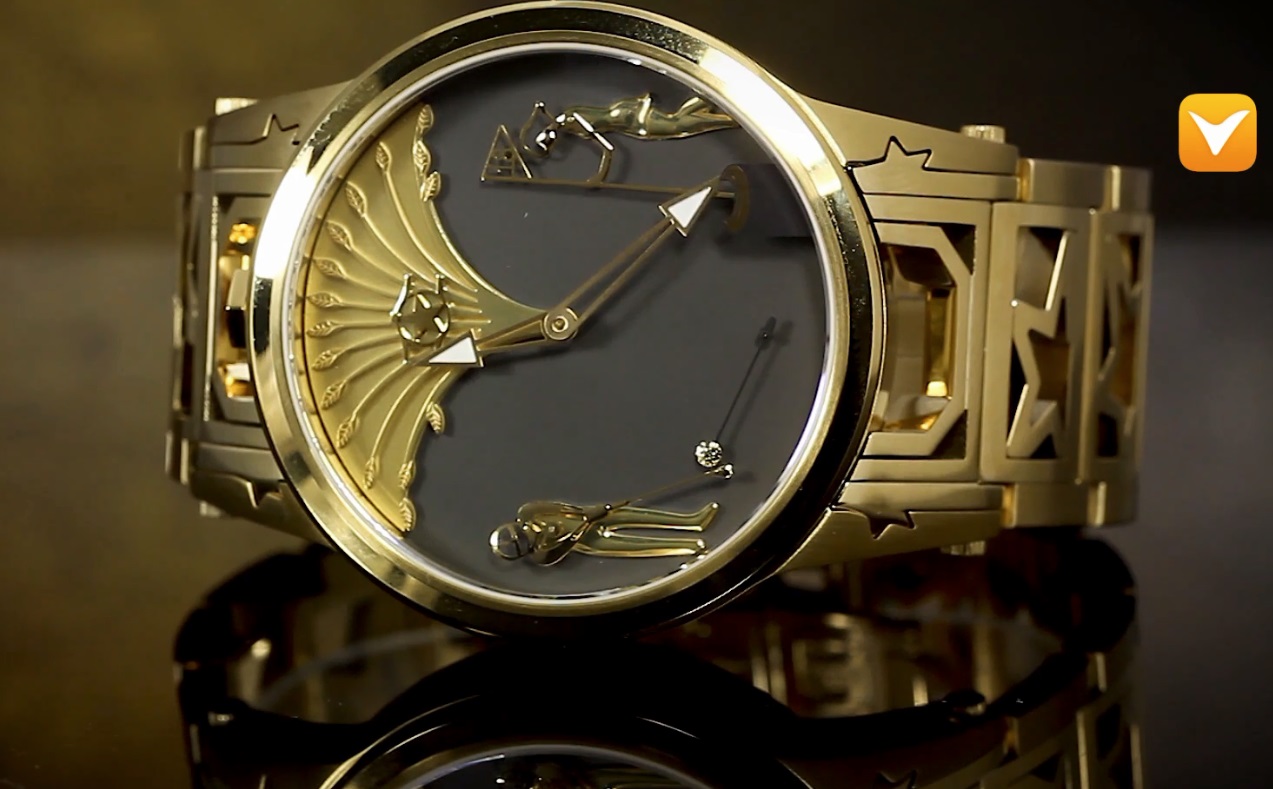 Movement: Swiss Made. Caliber A007WS, five (5) micro-motors, two (2) hands at center, programmed Samurai swords located at 3, 6, 9 on the dial, activate at the top of every hour.
