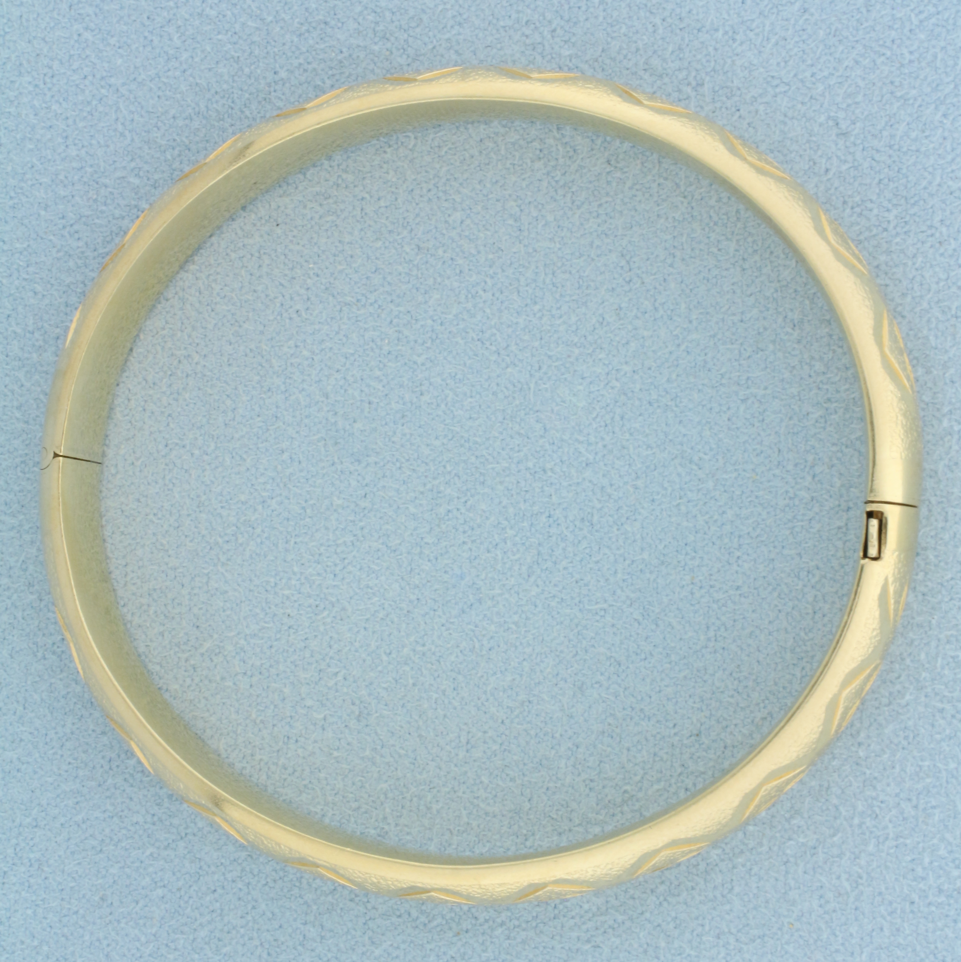 Wave Design Hinged Bangle Bracelet in 14k Yellow Gold
