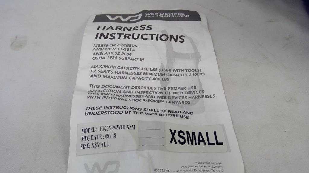 Web Devices Fall Arrest Systems Body Harness, X-Small