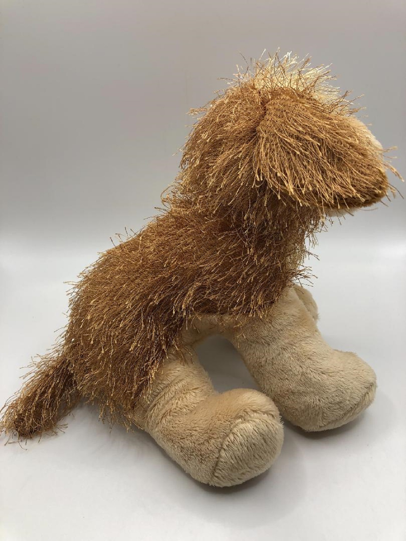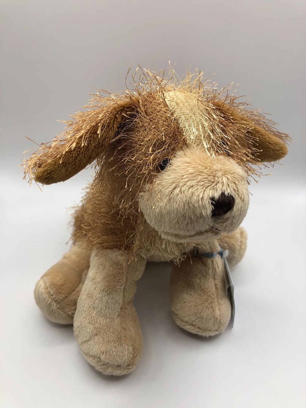 Very soft Cocker Spaniel stuffed toy with tan muzzle, blaze, belly and legs.