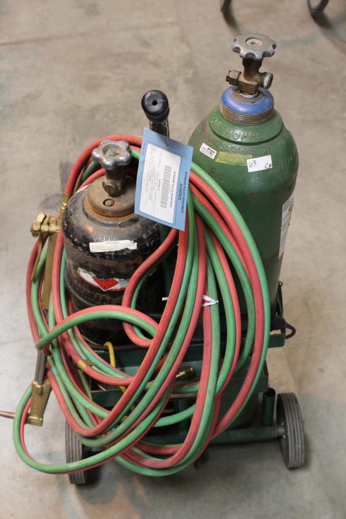 Get a great deal with this online auction for welding equipment presented by Property Room on behalf of a law enforcement or public agency client. - Welding Torch with Tanks, Hoses, and Cart