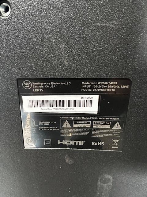 Get a great deal with this online auction presented by PropertyRoom.com on behalf of a law enforcement or public agency client. Model: WR50UT4009 Screen Size: 50 inch Remote Control: No Power Cord: Yes Physical Condition: Fair, scuffed and scratched. No major defects Testing Results: Item was tested for power only and it powered on, displayed menu. Input and output ports were not tested and may be non-functional. Item is sold "As Is".