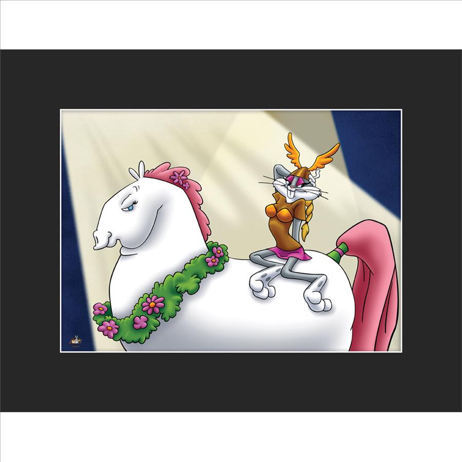 This limited-edition lithograph has been reproduced from the original Lobby Card of “What’s Opera Doc II?” This edition is limited to 5,000 hand-numbered pieces.  What's Opera, Doc? was released in 1957. This story features Elmer Fudd chasing Bugs Bunny through a parody of 19th century classical operas. Originally, “Lobby Cards” were created to publicize each cartoon and were used by theater owners to display in theater lobbies. Licensed. Presented matted with COA- 14x11