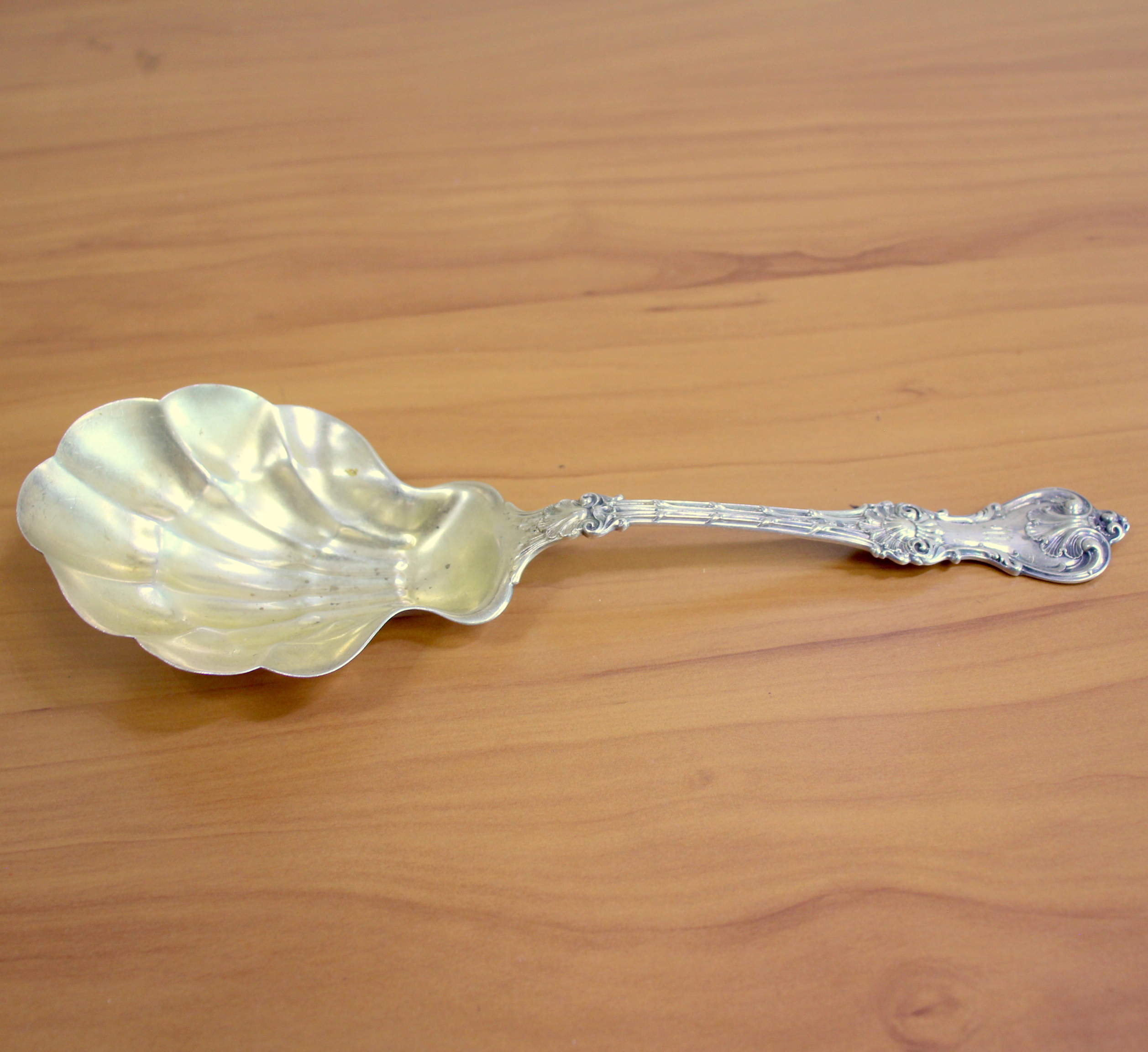 Whiting "King Edward" Sterling Silver Large Solid Shell Serving Spoon