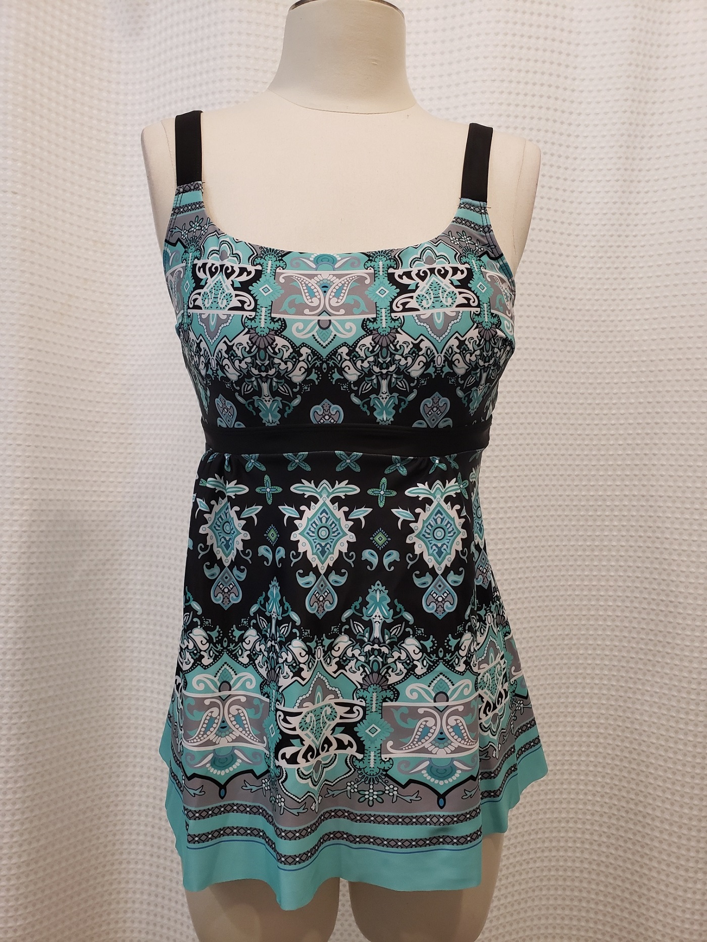 Women Teal Blue Printed Tummy Control Tankini Top Only Sz Medium