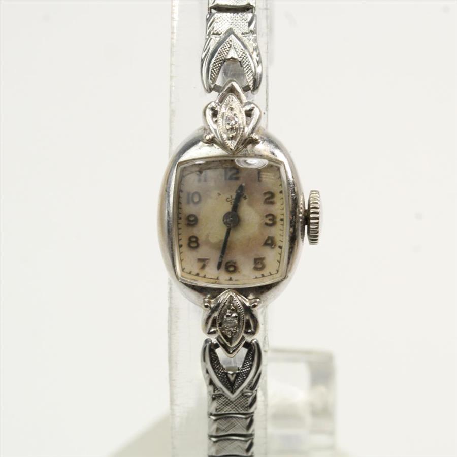 Women's 14kt White Gold & Diamond Vintage Elgin Watch