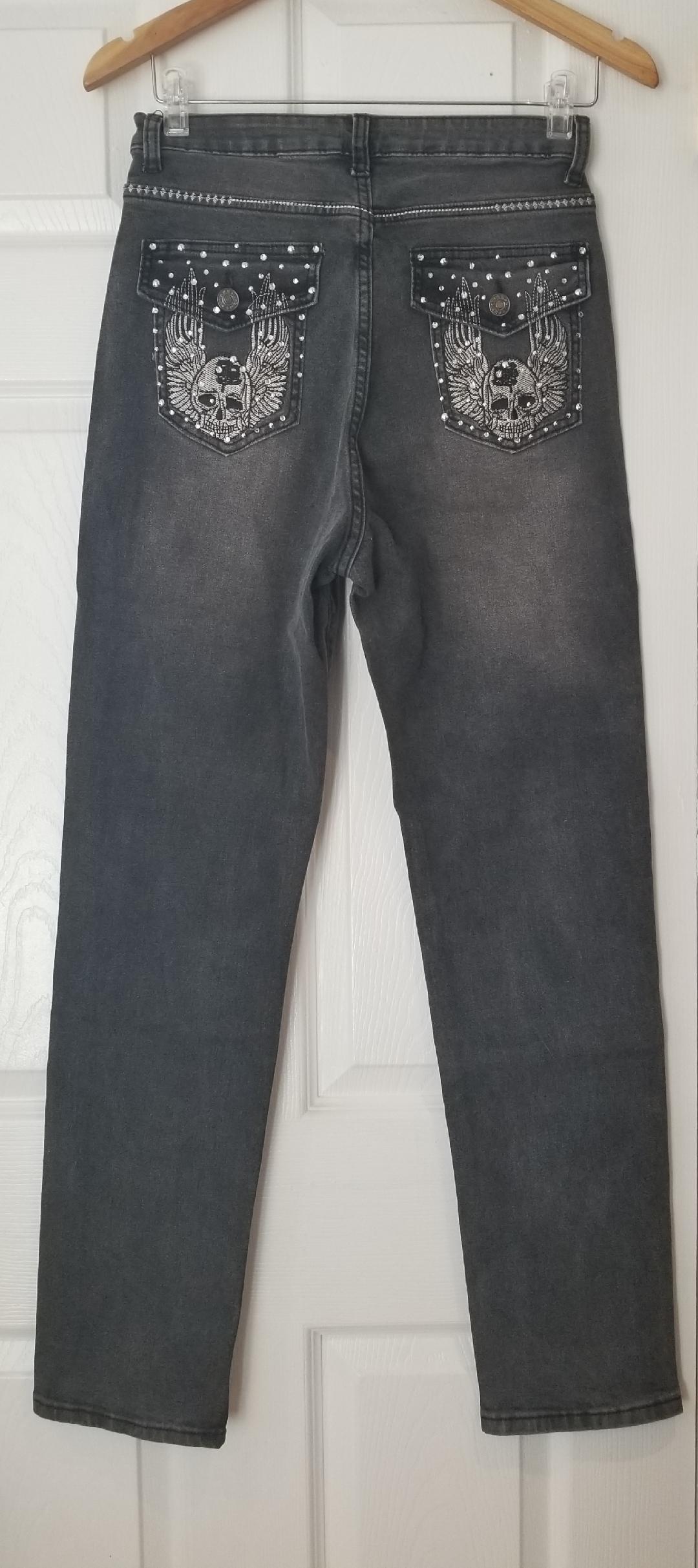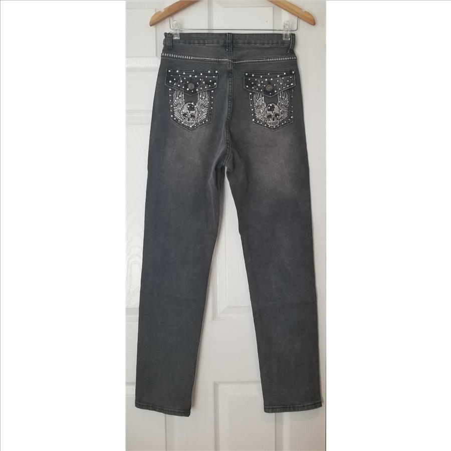 Womens Embroidered Skull Angel Denim Jeans Size - S/M