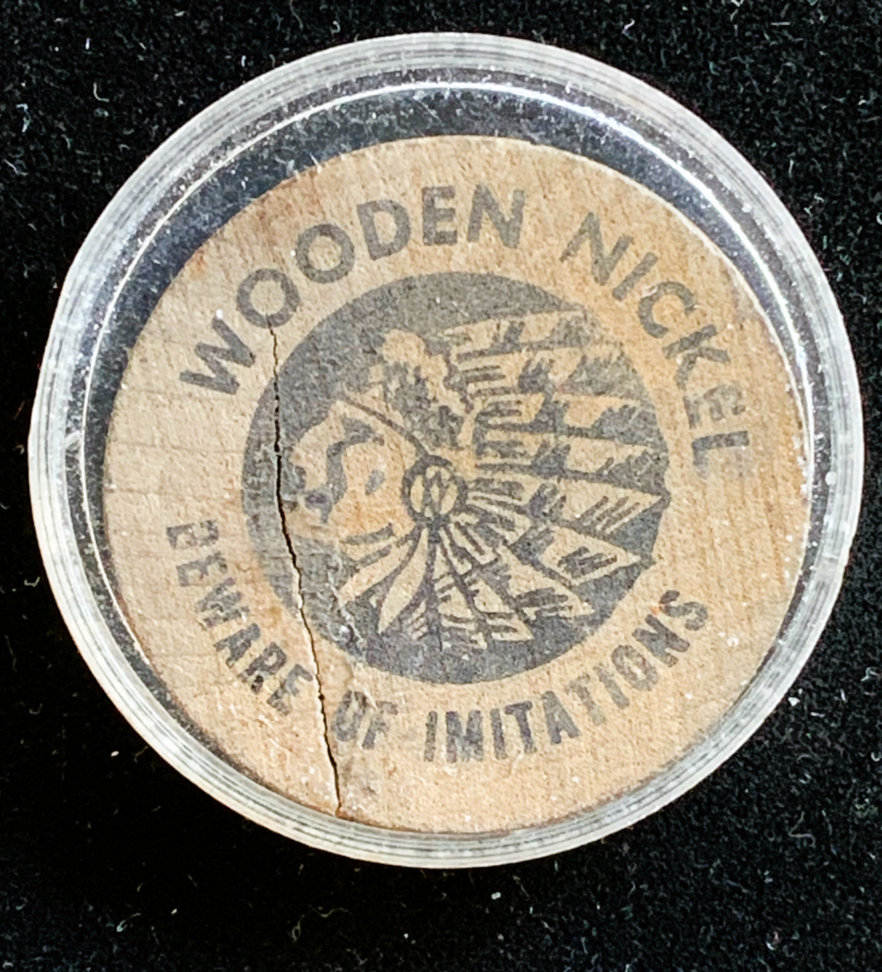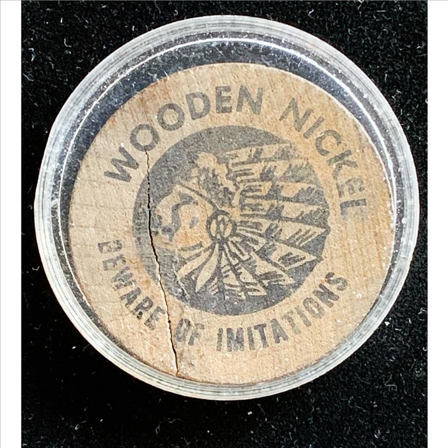 WOODEN NICKEL VINTAGE COLLECTABLE IN CAPSULE