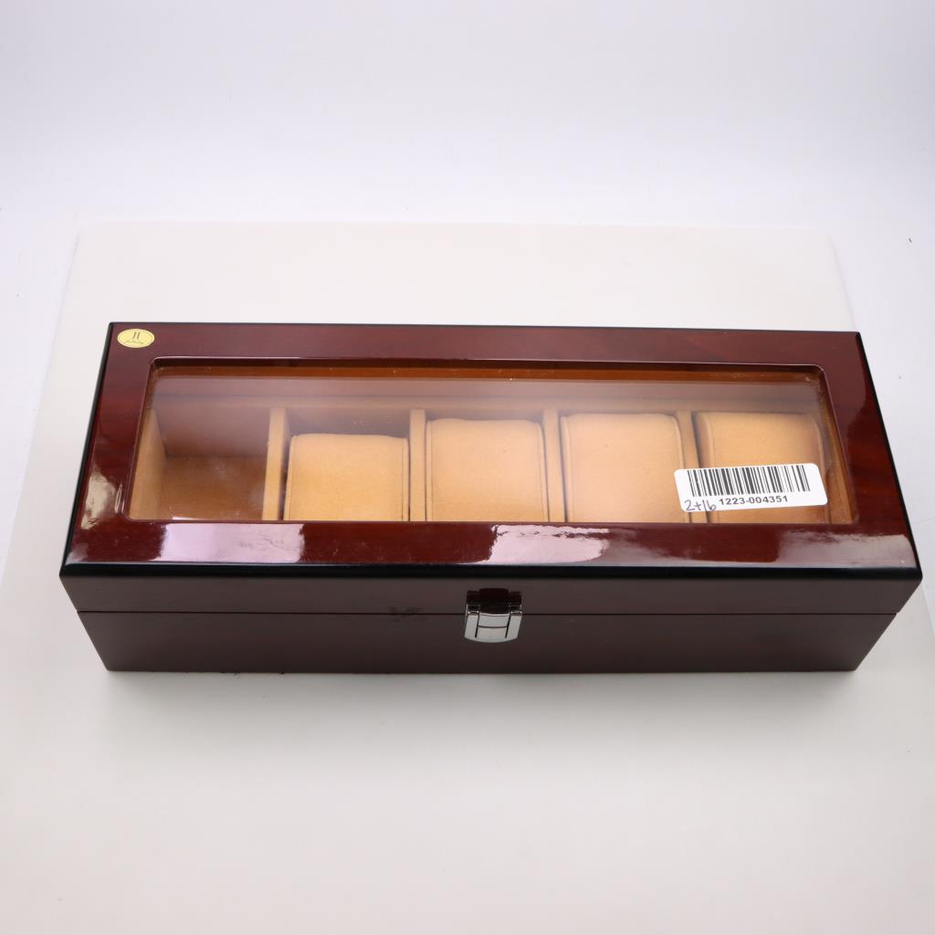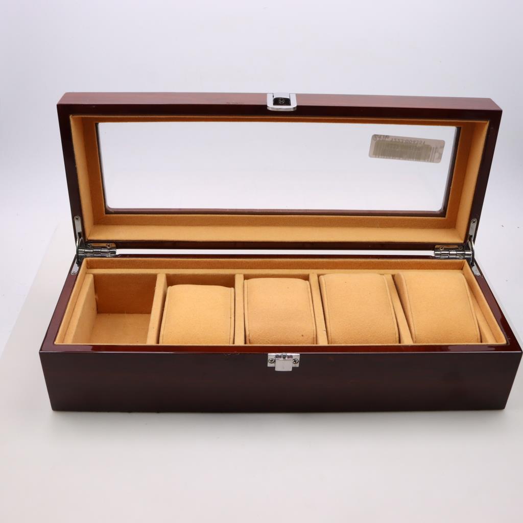 Wooden Orange Felt Lined Windowed Top Watch Case
