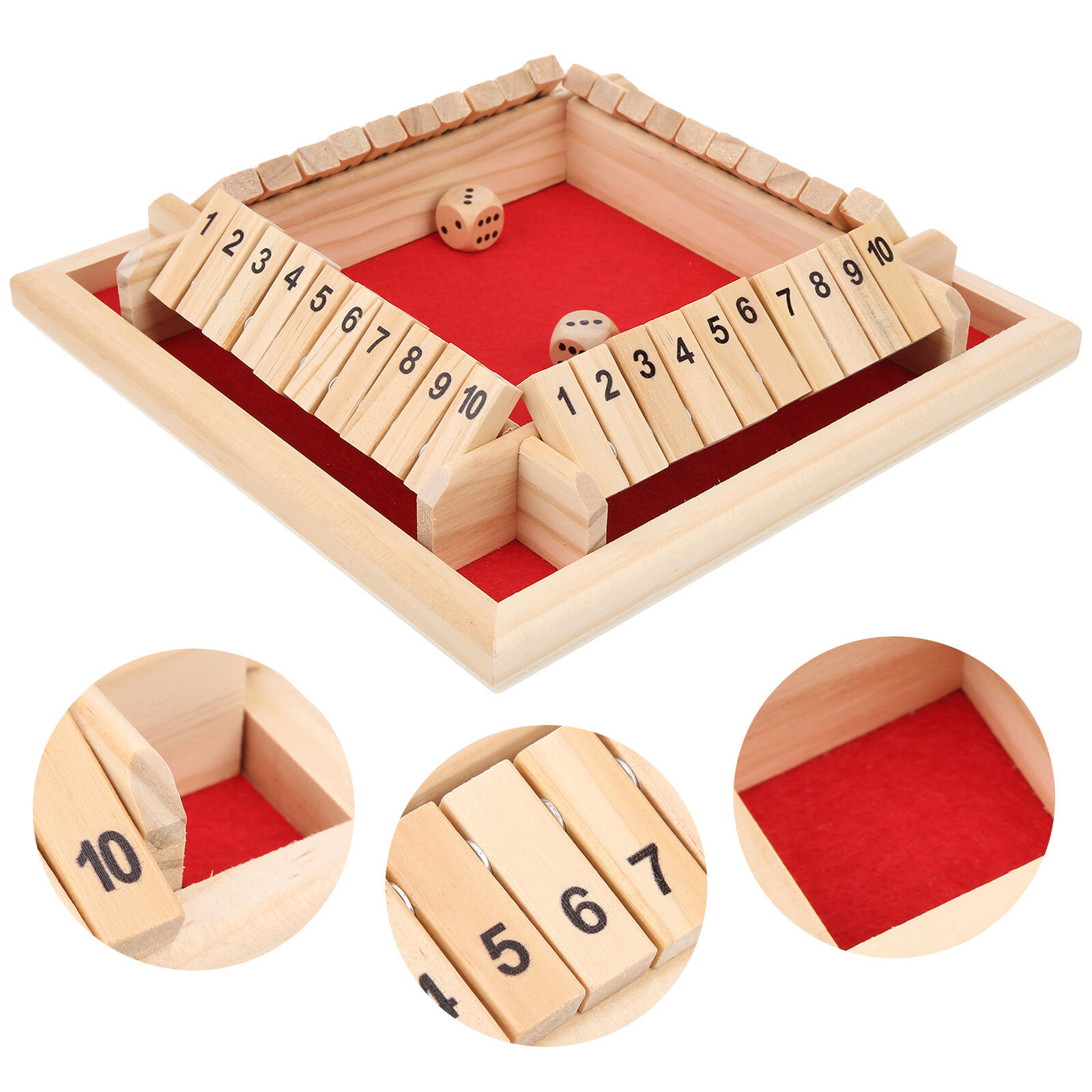 Wooden Shut The Box Dice Game 4 Sided 10 Numbers Board Tabletop Game Toys