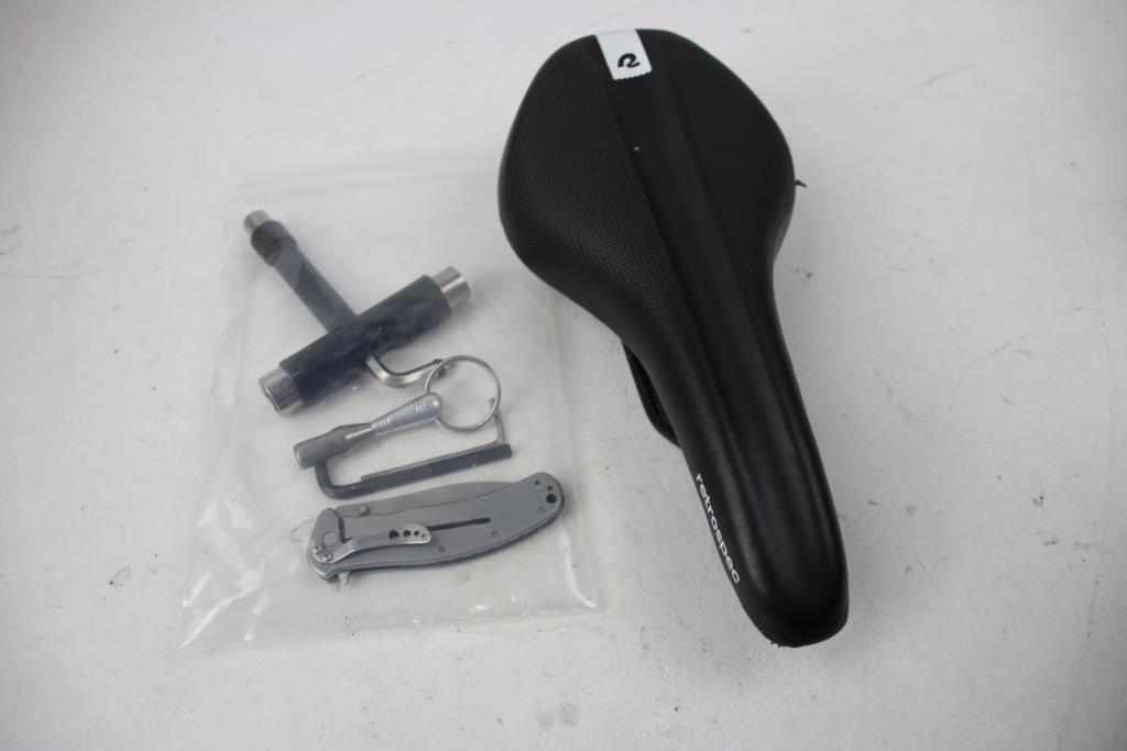 Workforce Tool Box, Retrospec Bicycle Seat, And Kershaw Folding Knife