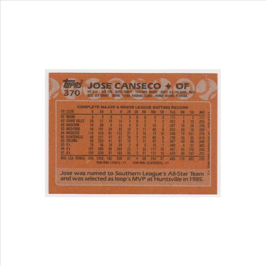 PropertyRoom.com's trusted merchant, Sports Collectibles, presents this online auction for the above Wrong Front Error - Jose Canseco 1988 Topps Card.