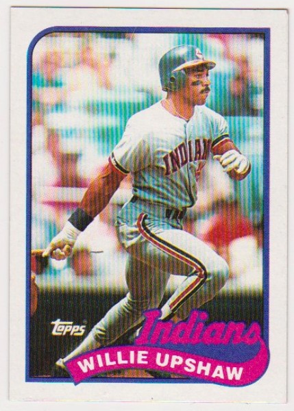 This is a 1989 Topps Ryne Sandberg card with a very unusual error.  This one was printed wrong and has Willie Upshaw on the front.  Most of these error cards are destroyed at the factory and very few ever get out.  This is an approximately EX to EX-MT condition card featuring this baseball Hall of Famer. It has light wear but overall displays pretty well.