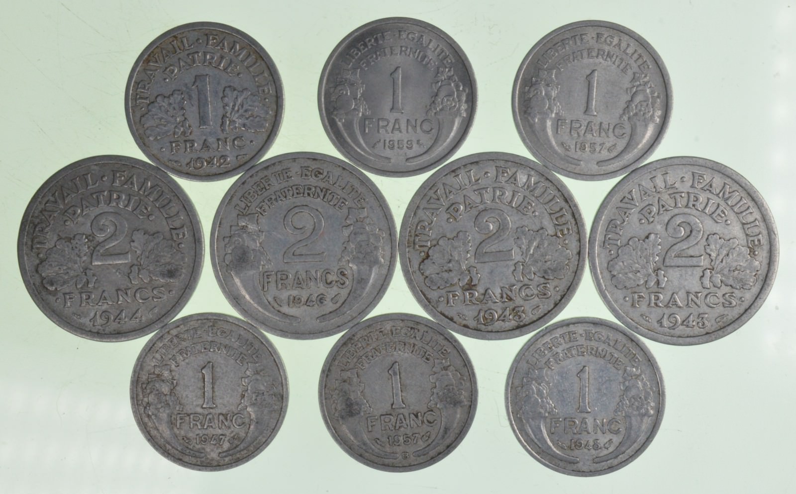 WWII World War 2 Era Lot of French Aluminum Coins Collection Lot
