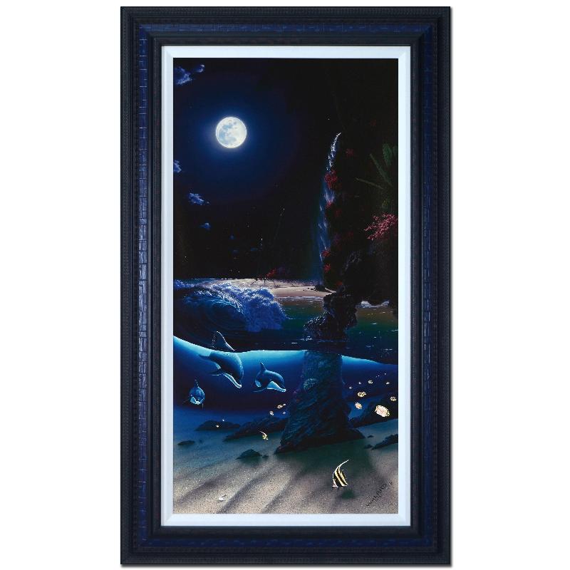 "Island Paradise" is a limited edition giclee on canvas, numbered and hand signed by Wyland! This piece was custom framed using acid free materials and is ready to hang. Includes Certificate of Authenticity! Measures approx. 28.5" x 48.5" (with frame); 19.5" x 39.5" (image).