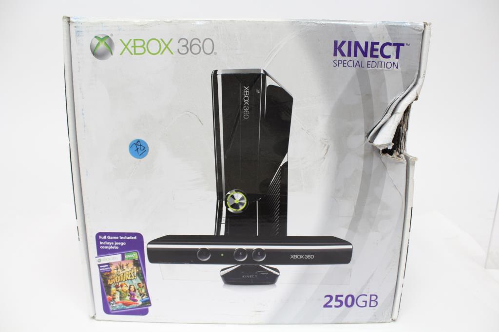 Get a great deal with this online auction for a game console by Property Room on behalf of law enforcement or public agency client. Model: Xbox 360 S HDD: 250GB Controllers: 1 Wireless controller Video Out Cable: Yes Power Cord/Adapter: Yes Accessories: Headset, Kinect Sensor, Kinect Adventures Game Cosmetic Condition: New in box Condition: New