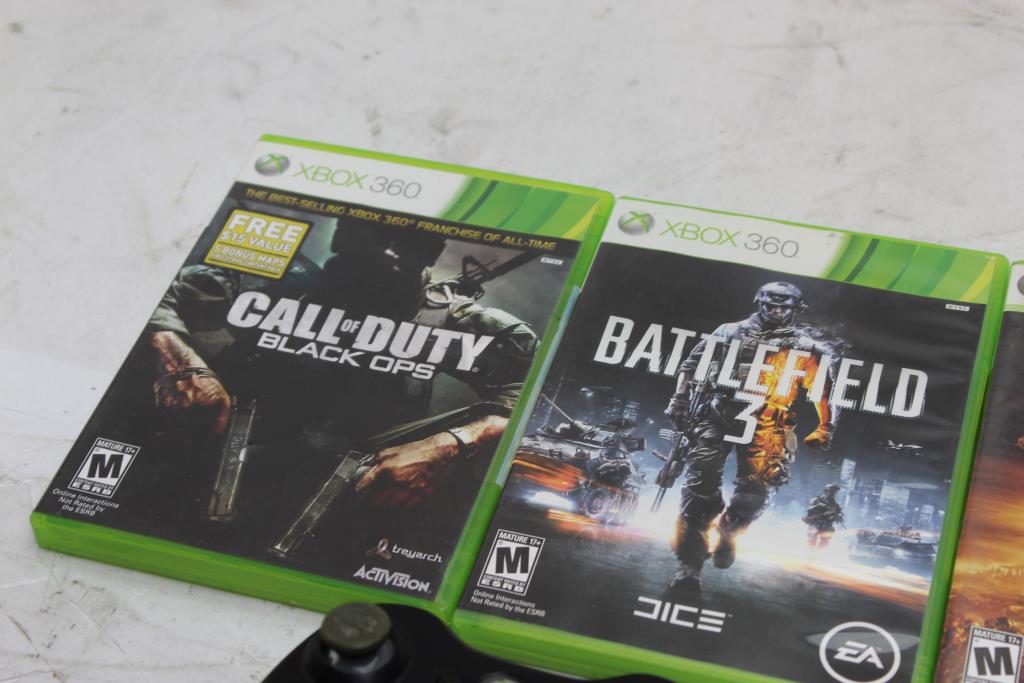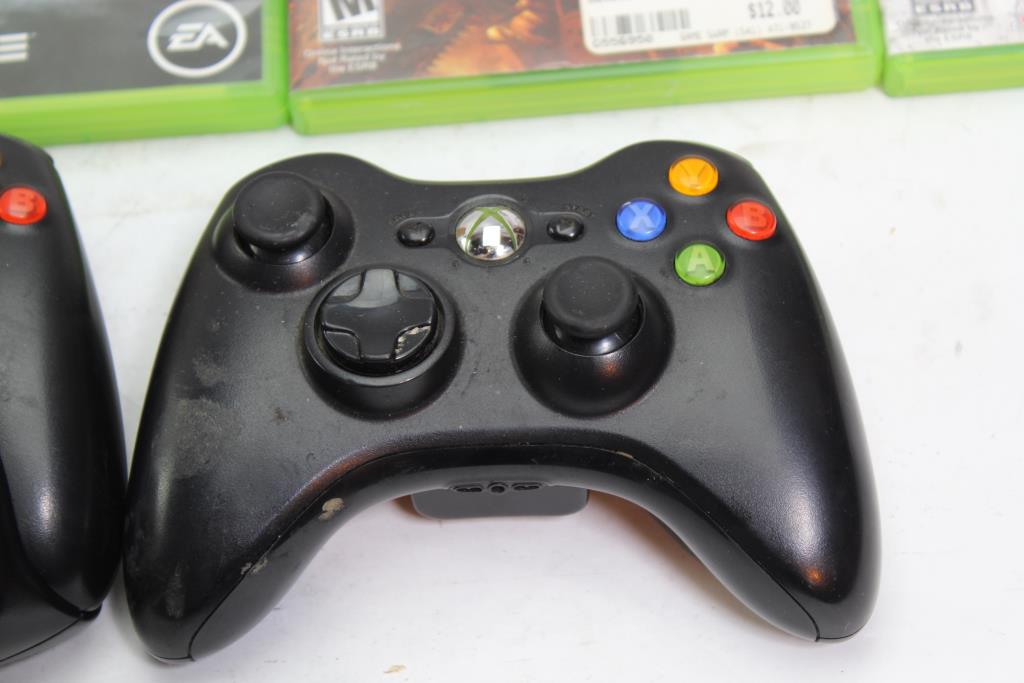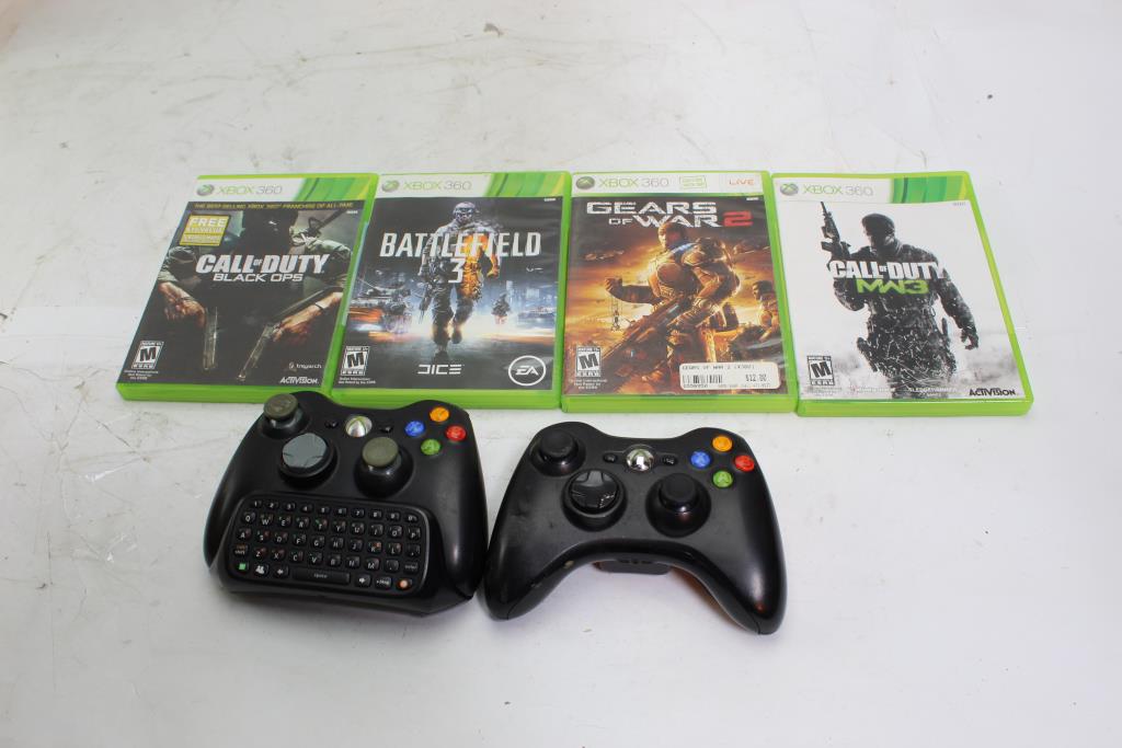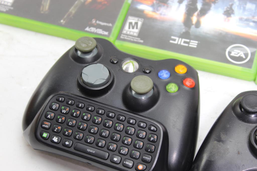 Xbox 360 Wireless Controllers, Chatpad Keypad And Video Games, 7 Pieces