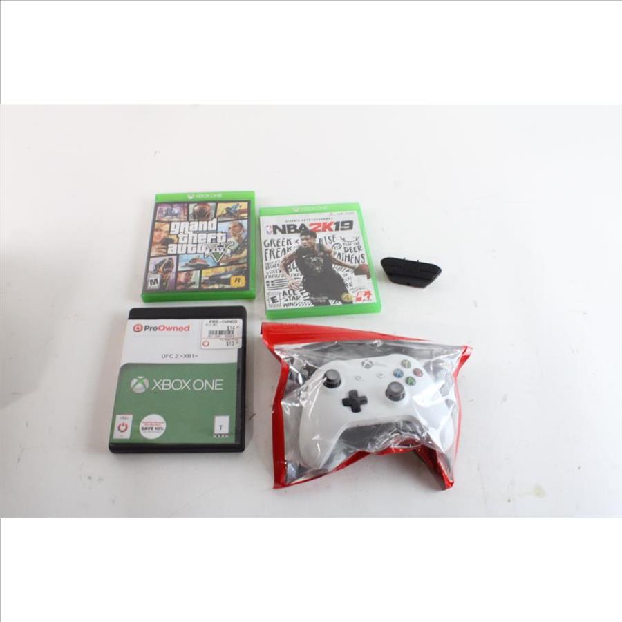 Get a great deal with this online auction presented by PropertyRoom.com on behalf of a law enforcement or public agency client. Model: UFC 2 Xbox One, NBA 2k19 Xbox One, GTAV Xbox One, Xbox One Headset adapter, White Xbox One controller, Physical Condition: Fair with scratches and dust Testing Results: Untested Condition: Untested - Sold as-is This item is untested and may require repair. Item is sold "As Is" and is not returnable.These used disks may have scratches that cause skips.