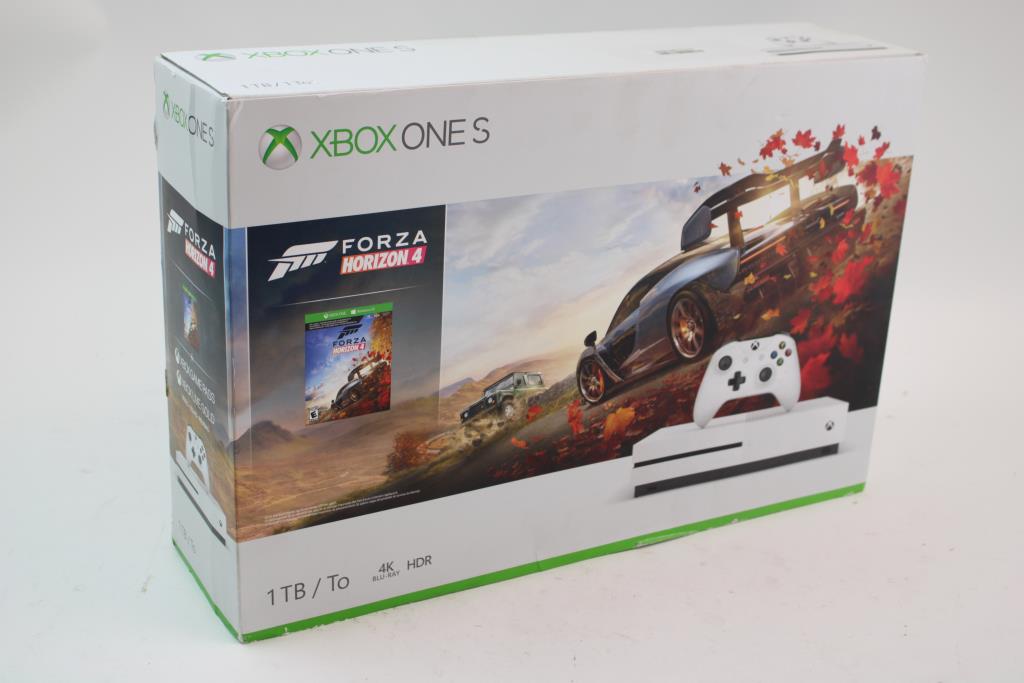 Get a great deal with this online auction presented by PropertyRoom.com on behalf of a law enforcement or public agency client. Model: XBox One S 1 TB Forza Horizon 4 Game Console Bundle HDD: 1TB Upc: 889842307047 Controllers: one Video Out Cable: included Power Cord/Adapter: included Physical Condition: New Condition, appears new and unused, unopened sealed original packaging Testing Results: untested - No extended runtime testing is performed, item is being "Sold As Is"