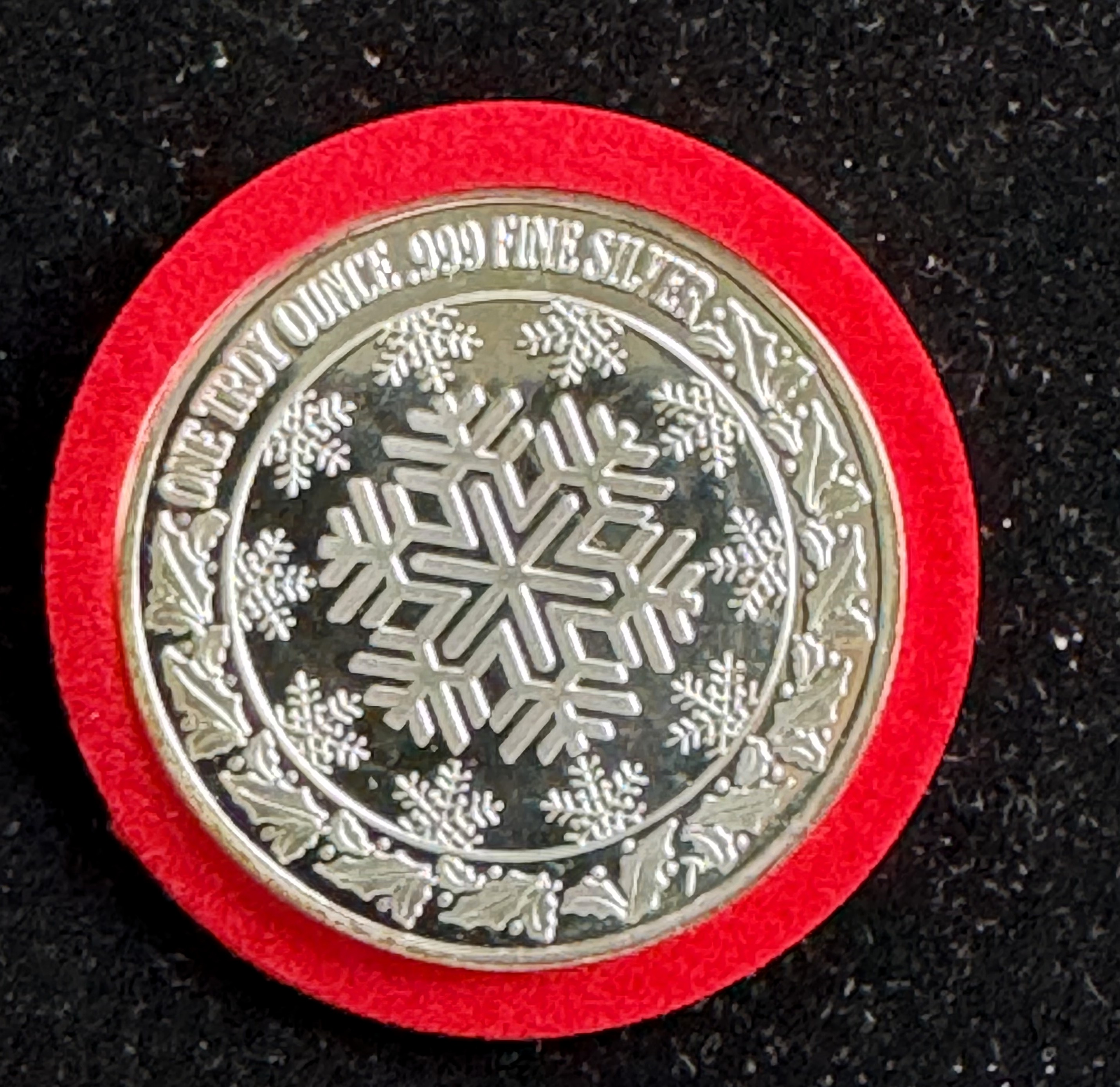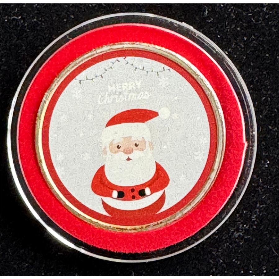 XMAS, 1oz .999 FINE SILVER, PROOF COLORIZED COIN, SANTA IN AN ORNAMENT HANGING CAPSULE