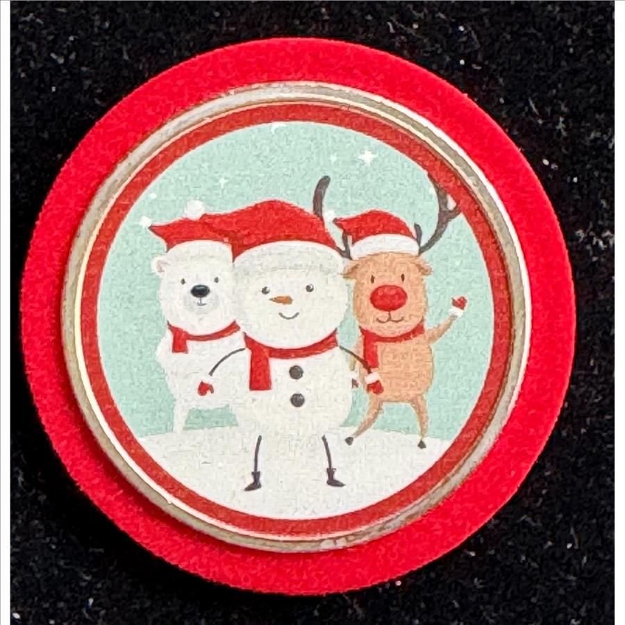 XMAS 1oz .999 FINE SILVER, PROOF COLORIZED COIN, SNOWMAN, POLAR BEAR, REINDEER, IN AN ORNAMENT HANGING CAPSULE