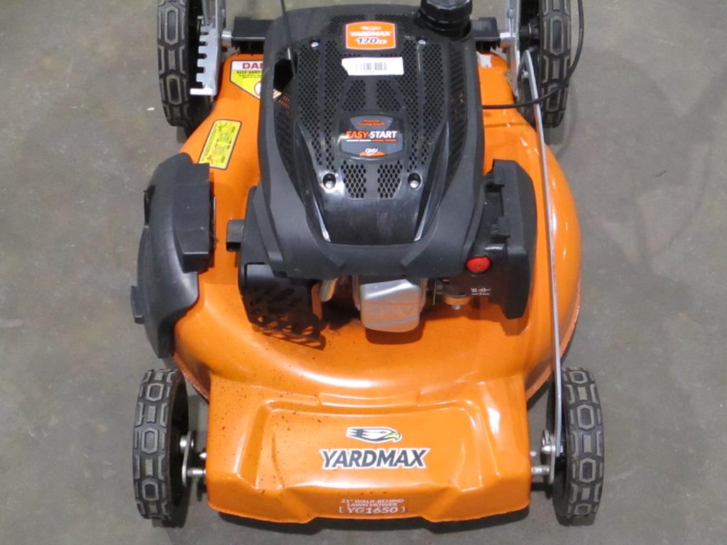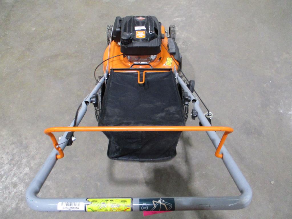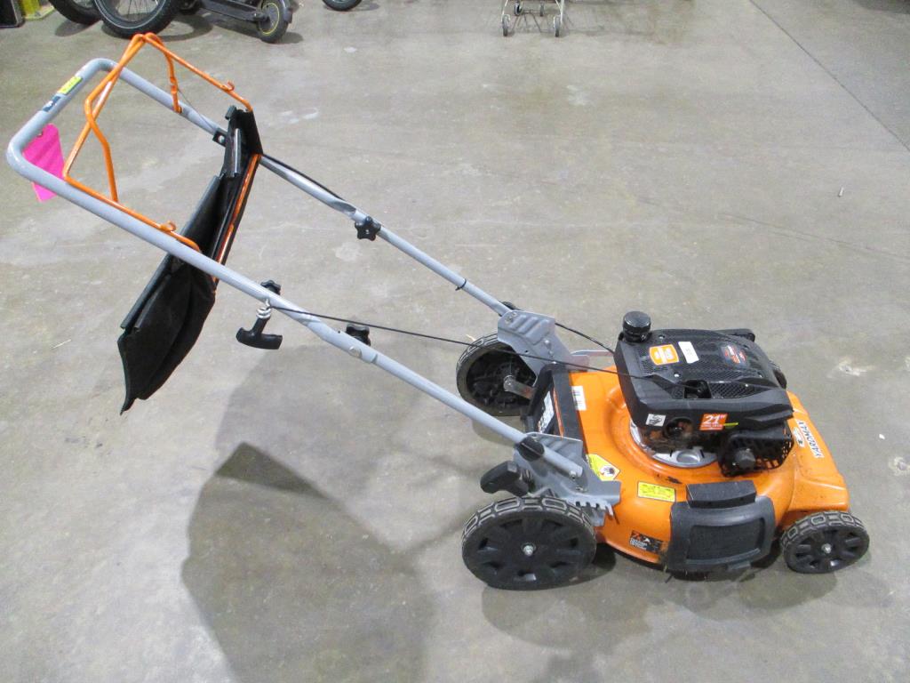 • Item Info: Gas powered, pull cord start, self propelled, rear discharge with bag, 170cc, OHV Engine, 21" cut, adjustable cut height