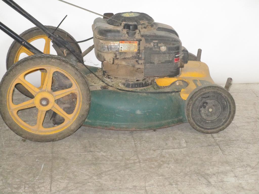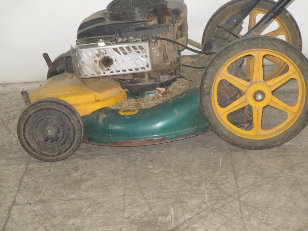 Get a great deal with this online auction presented by PropertyRoom.com on behalf of a law enforcement or public agency client. Brand: Yard-Man Model: 12a-559kd62 Color: Green and Yellow Gas powered, pull cord start, Self propelled transmission driven, 21" cut, adjustable cut heights, rear discharge no bag, rear wheel 131/2 ", front wheels 8", Intek engine 6.5hp ohv. - Measurements: 40" T X 22" W X 67" L.